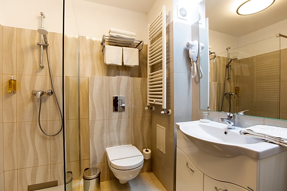 Soundproofed room including air conditioning, and a bathrobe on request. The bathroom comes with hairdryer and free toiletries.Only 1x child under 12 years per room possible
